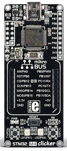 the onboard mikroBUS™ socket. Add sensors, transceivers,